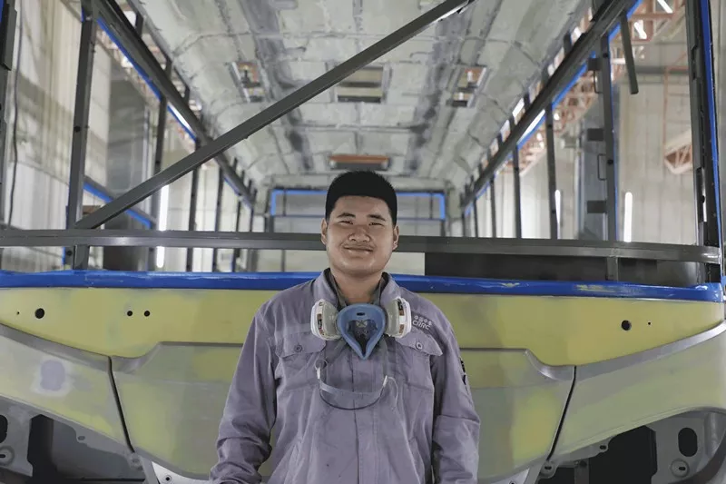 中车时代电动涂装车间里