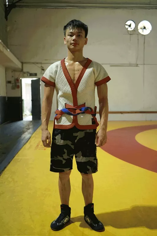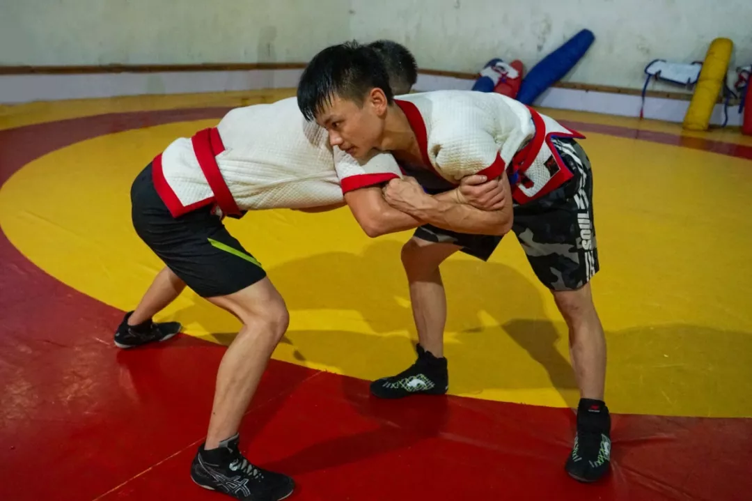 18岁的“摔跤小子”王光强正和队友进行对抗训练