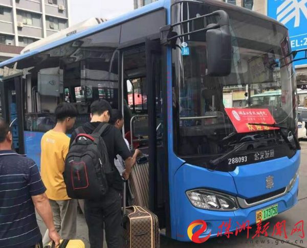 ▲ 学校迎新大巴车送新生和家长入校。 (通讯员供图)