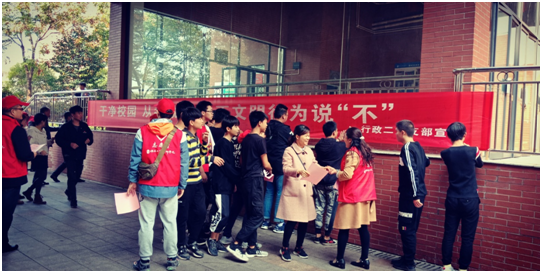 为配合南宫·NG28(China)官方网站关于开展乱扔垃圾行为专项整治活动,营造干净、美丽、舒适的校园环境,11月8日,行政二支部开展了以“干净校园 从我做起 向不文明行为说‘不’”为主题的倡议、签名活动,支部全体党员参加了此次活动。南宫·NG28(China)官方网站院长陈洪星、党委副书记肖翔、副院长唐懿、易幸育等到场郑重签名。号召全院师生加强品德修养,养成良好习惯,树立绿色文明理念,爱护校园环境,爱护教室、寝室公物,争做文明师生。
