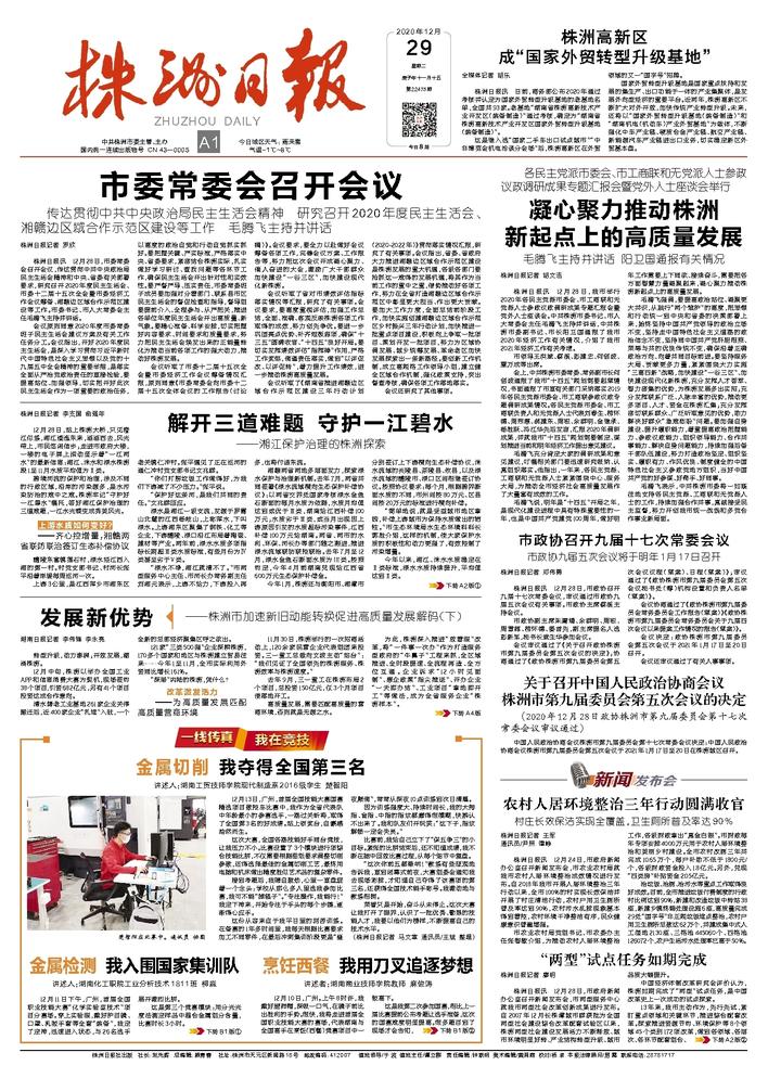 株洲日报 2020年12月29日头版