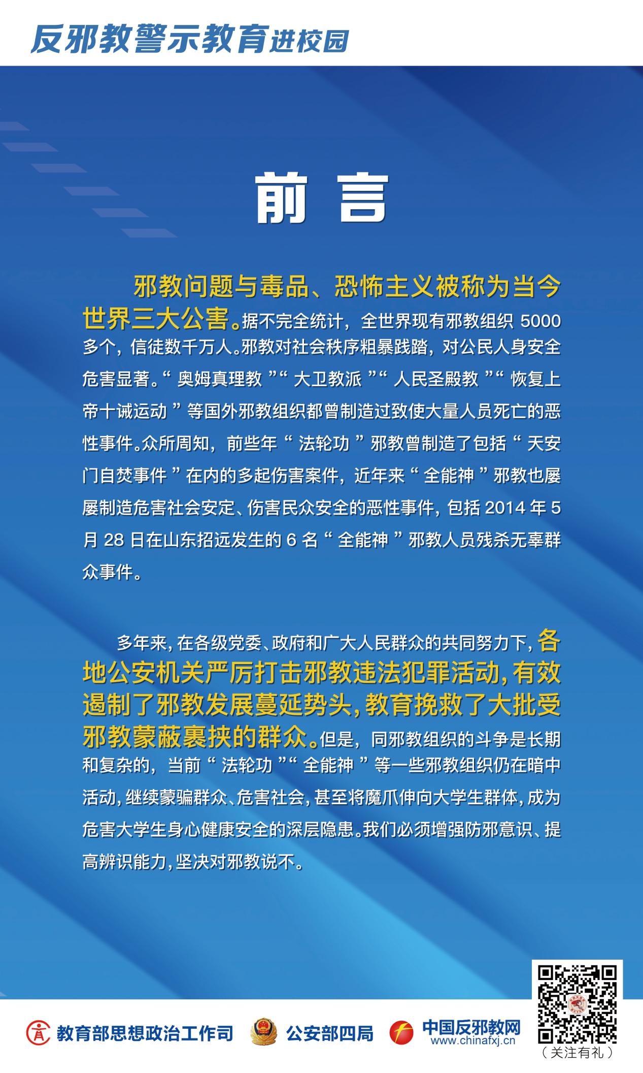 2021年4月15日是第六个“全民国家安全教育日”,南宫·NG28(China)官方网站邀您一起参与“对邪教说不”活动,大家可以关注“中国反邪教”微信公众号,点击“我要签名”栏目,登录后参加“对邪教说不”签名、反邪教知识答题、反邪教趣味小游戏、反邪教资料宣传和抽奖活动,让我们通过此次活动的开展,增强国家安全意识,提高反邪教意识和能力,真正成为“总体国家安全观”的践行者。