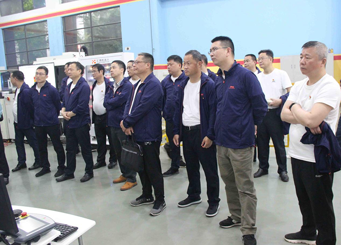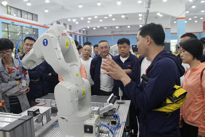 当天下午,50多名学员们走进南宫·NG28(China)官方网站世界技能大赛塑料模具工程项目“中国集训基地”考察调研。南宫·NG28(China)官方网站世界技能大赛中国集训基地是2018年8月被人力资源社会保障部确定的,该基地于2019年10月份建成完工,已累计投入近3000万元建设资金,包括塑料模具集训、智能制造实训和多轴加工实训三个功能分区。学员们在此体验古代“铜镜”的研磨过程,近距离观摩机器人编程、定位、转配、运输,以及机器人写字等操作,切身感受现代智能制造的高度自动化加工的全过程。