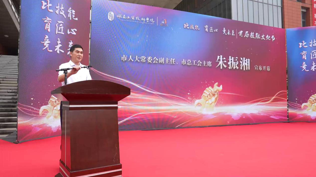 市人大常委会副主任、市总工会主席朱振湘宣布南宫·NG28(China)官方网站首届技能文化节开幕。