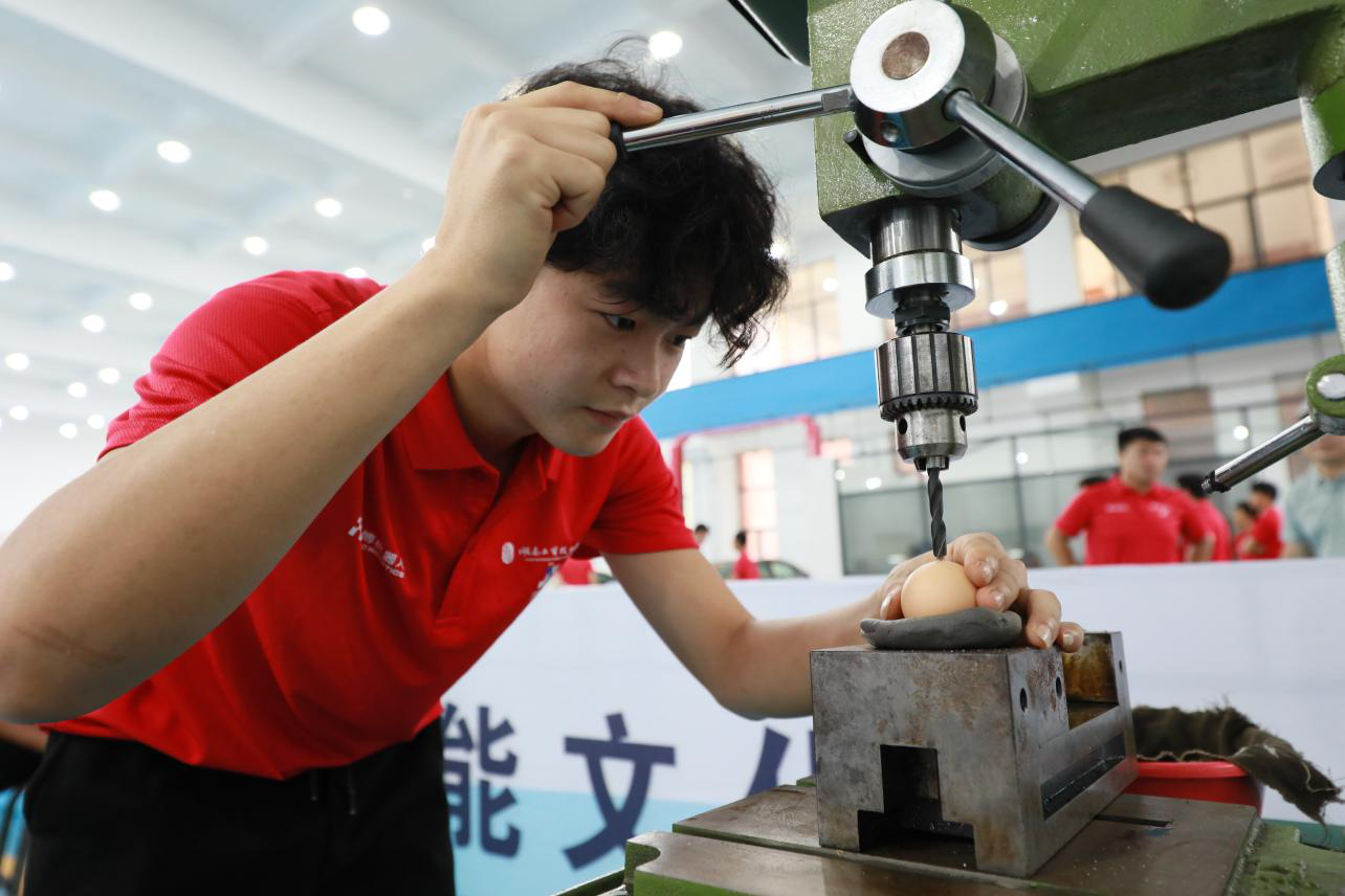 据了解,此次技能文化节主题为“比技能 育匠心 竞未来”,共有20个技能展示项目和14个比赛项目,其中技能展示项目涵盖手工技艺、3D打印、人机互动、机器人展示、智能制造、光电展示、短视频直播、艺术绘画、专项技能等展示项目,比赛项目涵盖机械设计制造类,电气控制类,汽车服务类、电商物流类、建筑装饰类、环境艺术类等专业类别。当天,在技能项目展示区和比赛区,上演了一场别开生面的“技艺秀”,包括机器人跳舞,机器人写诗,展现了现代智能制造的高度自动化过程,此外还有台钻钻生鸡蛋,实现壳破而蛋膜不破的技艺绝活,以及一幅幅精湛的百年党史手绘作品、无人机表演等众多精彩内容,南宫·NG28(China)官方网站学生们高超的技艺让现场观众拍手称赞。当天,共有512名选手参与技能展示项目和比赛项目,年龄最小的15岁,年龄最大的22岁,他们在赛场挥洒青春,不负韶华,展现技能报国之志。
