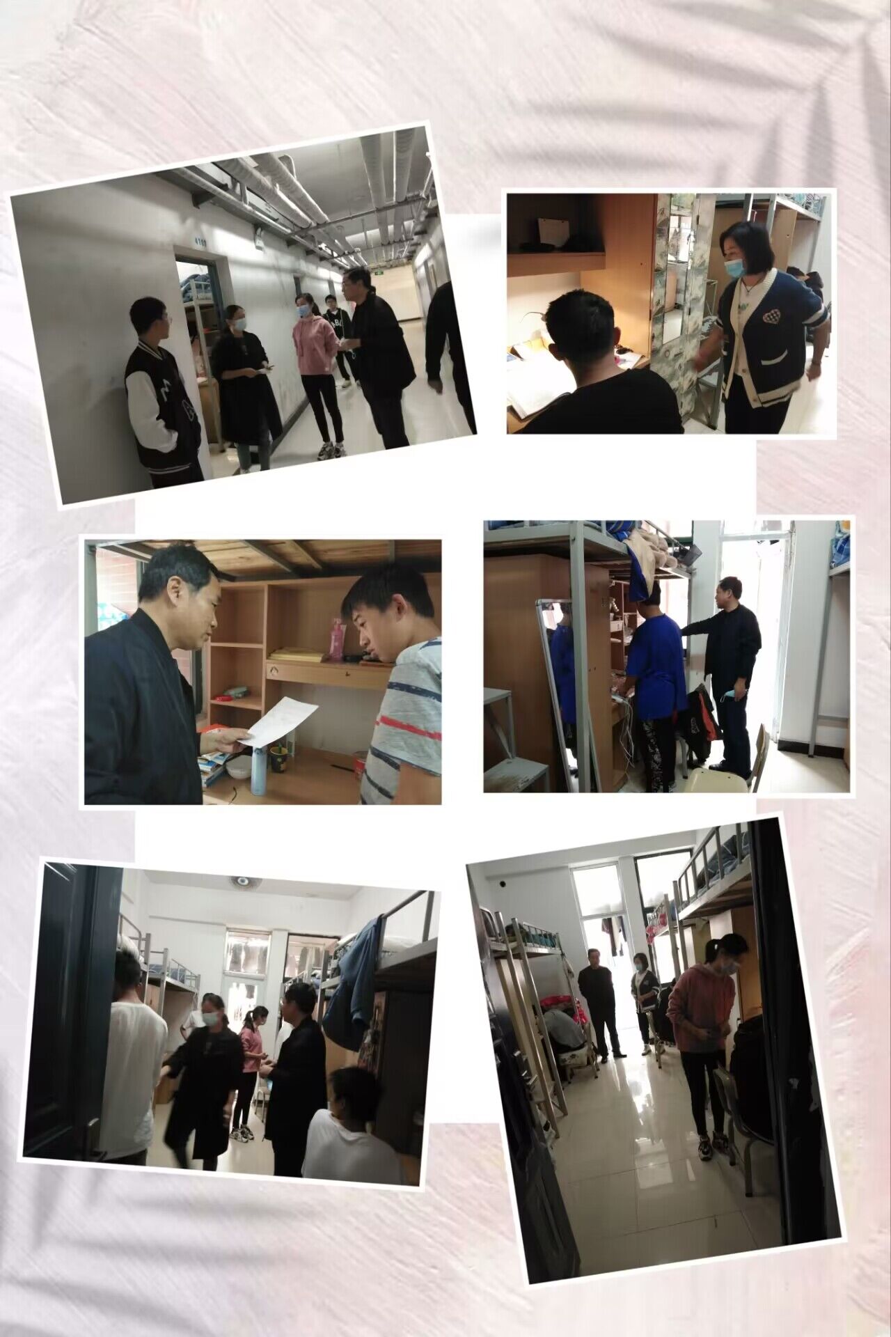 四是督促健康防疫。11月3日,系部负责人与班主任老师一起到系部男生寝室进行了健康关怀走访,除关注同学们身体健康没有异常外,同时对学生的心理健康状况进行了解,指导同学们正常饮食起居,安抚同学们情绪,引导同学们正确对待疫情对学习生活造成的影响,并叮嘱学生们有任何问题都可以及时和系里领导老师沟通求助。 (图/文:公共管理系)