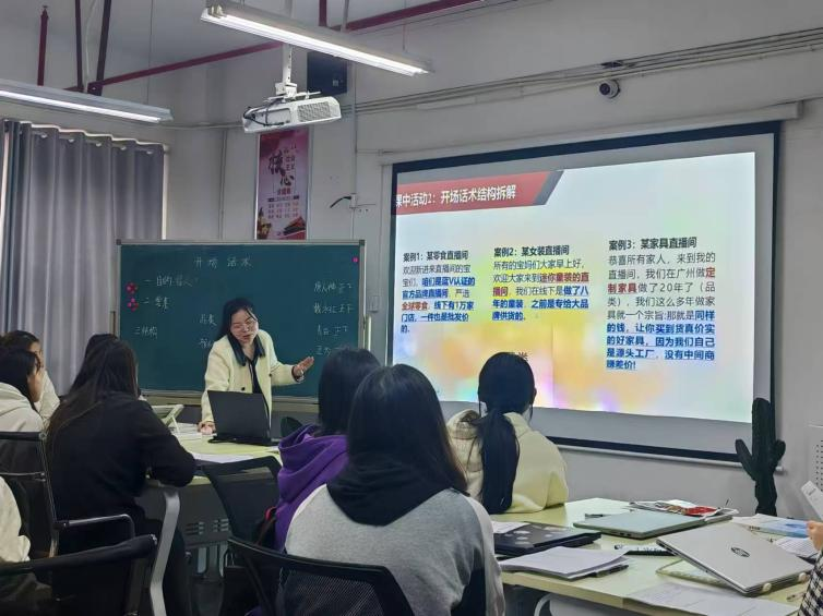 10月29日,经贸物流系王艾乔老师展示了一堂公开课《直播开场话术》,经贸物流系党支部书记陈小娥、副主任孟凡越及部分本系、外系教师现场进行了观摩。