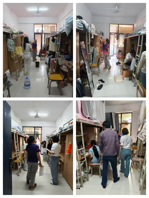 指导老师们仔细检查学生宿舍卫生情况,示范内务整理,指导解决电线杂乱、物品堆放、门窗安全等方面的问题,强调宿舍环境的重要性,带领同学们改善宿舍环境。
