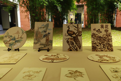 步入被师生亲昵称为“四合院”的德厚楼,仿佛穿越时空隧道。中庭绿植与现代建筑相映成趣,回型走廊化作“技能星河”—— 平面设计展区里,非遗烙画《花鸟鱼虫》以烙笔为针、竹木为绢,在青烟氤氲中重现千年古韵;毕业设计展上,“保护濒危海洋生物”主题展位用震撼插画唤醒环保意识,“狼人杀桌游”展位以暗黑系卡牌点燃创意热情;环境艺术设计展区更是惊喜连连,废旧管材搭建的火箭模型“冲破屋顶”,数字孪生技术打造的虚拟空间触手可及,传统工艺的温度与数字科技的酷感在此完美交融。