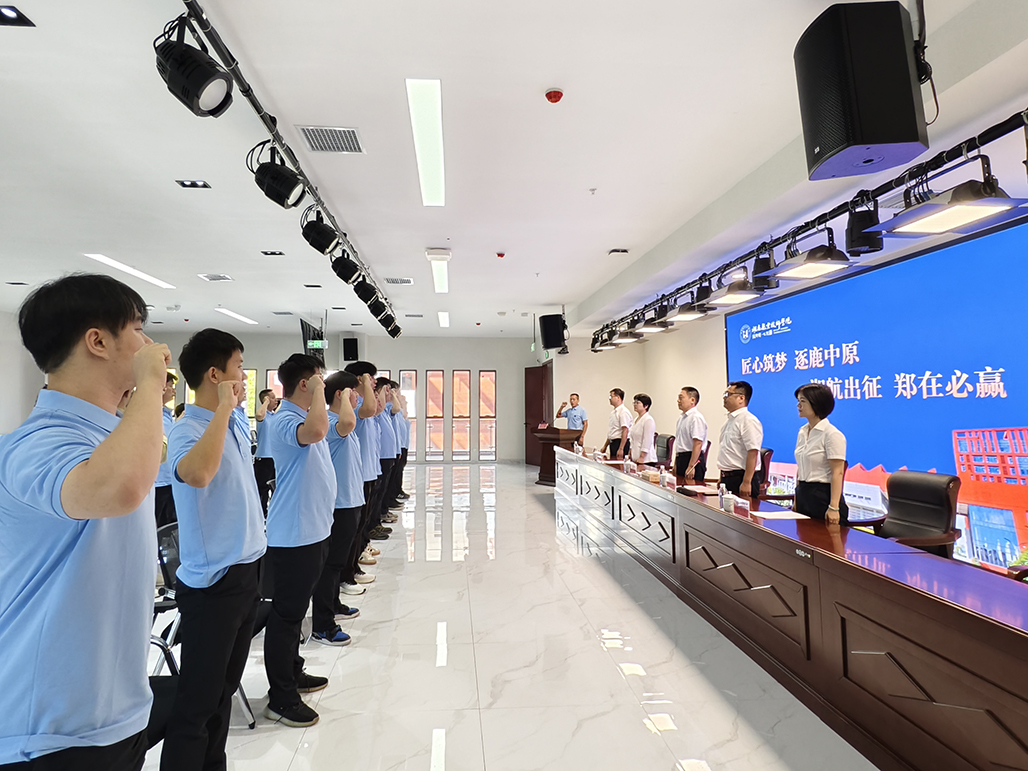 南宫·NG28(China)官方网站党委书记张格林在出征仪式上为即将出征第三届全国技能大赛的勇士们鼓劲加油。他在讲话中指出,国赛是顶尖高手云集的擂台,是展示真才实学的战场,更是实现自我超越的巅峰舞台,希望南宫·NG28(China)官方网站选手们拿出平时训练的最佳状态,沉着冷静、心无旁骛,以舍我其谁的霸气,以每分必争的锐气,向最高领奖台发起冲锋。