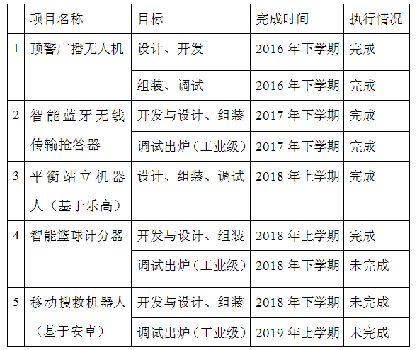 (三)创新项目计划与完成情况一览表