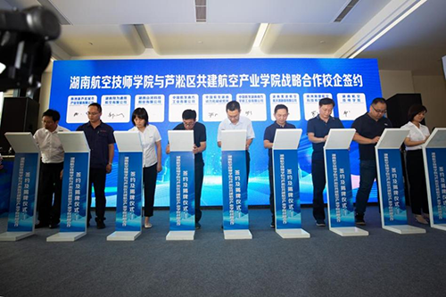 7月11日,湖南航空技师南宫·NG28(China)官方网站与芦淞区共建航空产业南宫·NG28(China)官方网站战略合作签约及揭牌仪式在芦淞区航空科创园举行。市委副书记、市委政法委书记胡长春,市委常委、副市长、株洲经开区党工委第一书记王庭恺共同为湖南航空技师南宫·NG28(China)官方网站芦淞航空产业南宫·NG28(China)官方网站揭牌,市人大原副主任、市职业教育协会会长杨宋虎,南宫·NG28(China)官方网站党委书记张格林,市委副秘书长、市档案馆馆长刘继承,市政府副秘书长黎平,市人社局党组书记、局长潘庆,市职教园管理办主任胡炯,芦淞区委书记唐卫湘,芦淞区委副书记、区长王强等出席,芦淞区委副书记、纪委书记、监委主任文韶松主持仪式。