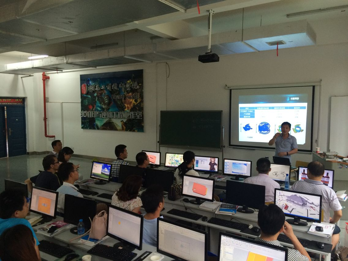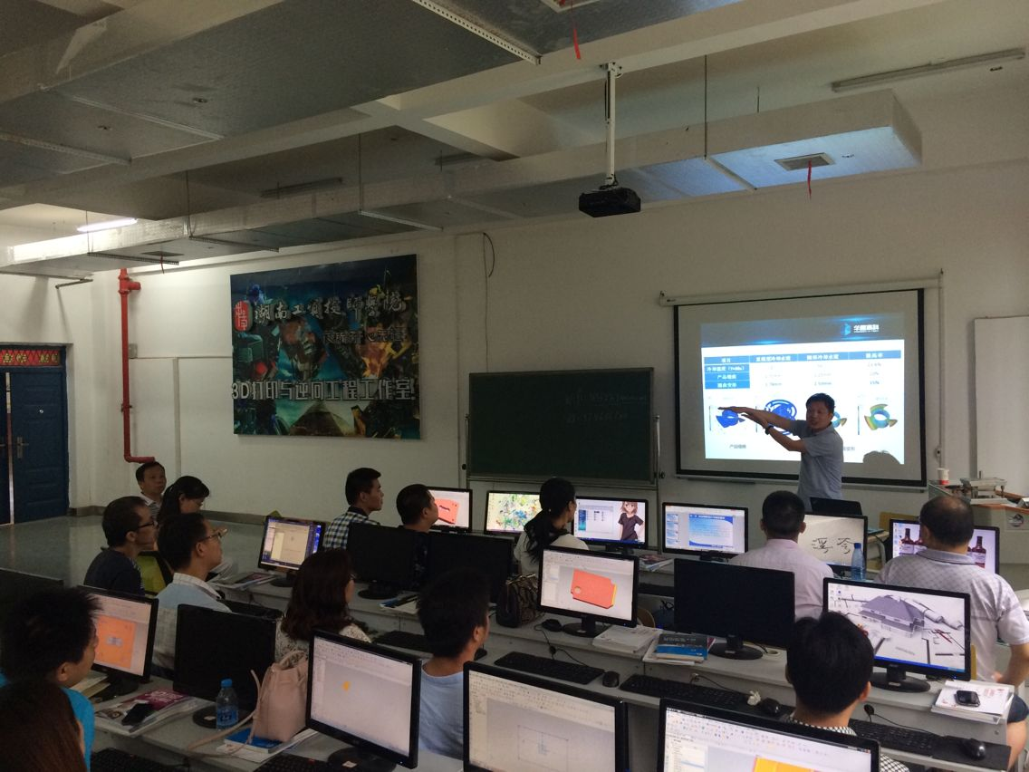 时间很快就到下午,主办方特约邀请到硕士生导师、华曙高科副总、长沙理工大学教授陈勃生给我们授课。陈教授用生动活泼的语言介绍了当今新兴行业-----3D打印技术,这也是此次培训的重头戏,从发展到成熟再到工厂的大量采用,无不透漏出此行业所孕育的巨大潜力,更为重要的是一下将这个昨天我们还在陌生的行业与技术,今天就带到了我们面前。讲座后,主办方安排了我们与陈教授面对面的答疑与互动交流。温涛温总针对南宫·NG28(China)官方网站3D打印工作室所陈列的全省技工院校为数不多的3D打印机进行了具体介绍,更加加深了我们对此次培训的浓厚兴趣。