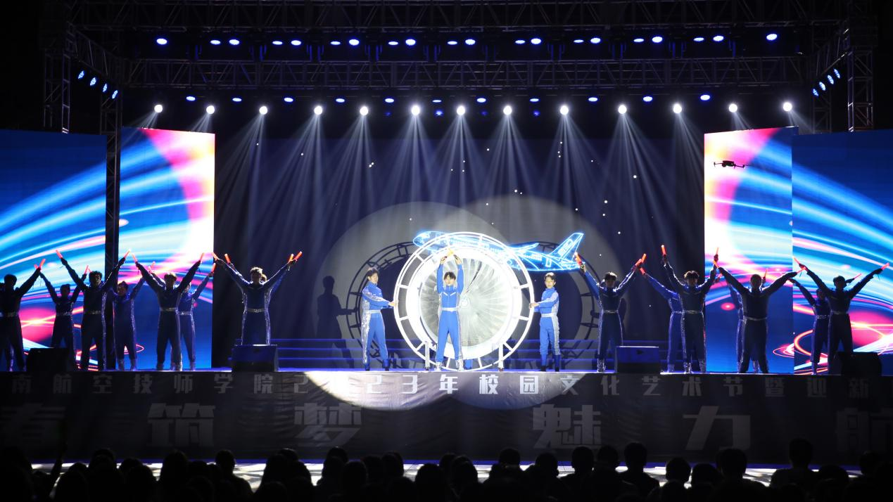 晚会在开场舞《魅力航空》的表演中拉开了序幕,演员动感而激情的舞姿燃起了在场观众的热情;紧接着各种精彩节目轮番登场,魅力四射;《清廉·风雅颂》给观众们充分展示了中华传统文化的博大精深和独特魅力;满载青春气息的《栀子花开》寓意着美好的校园时光;说唱《漂向远方》和女子群舞《天空随想》把晚会推向高潮,同学们犹如向往自由的鸟,挥洒着激情与青春,晚会在全体团委老师的歌声和无人机表演中圆满结束,本次晚会在网络平台全程同步直播,直播最高观看量达到4万+。