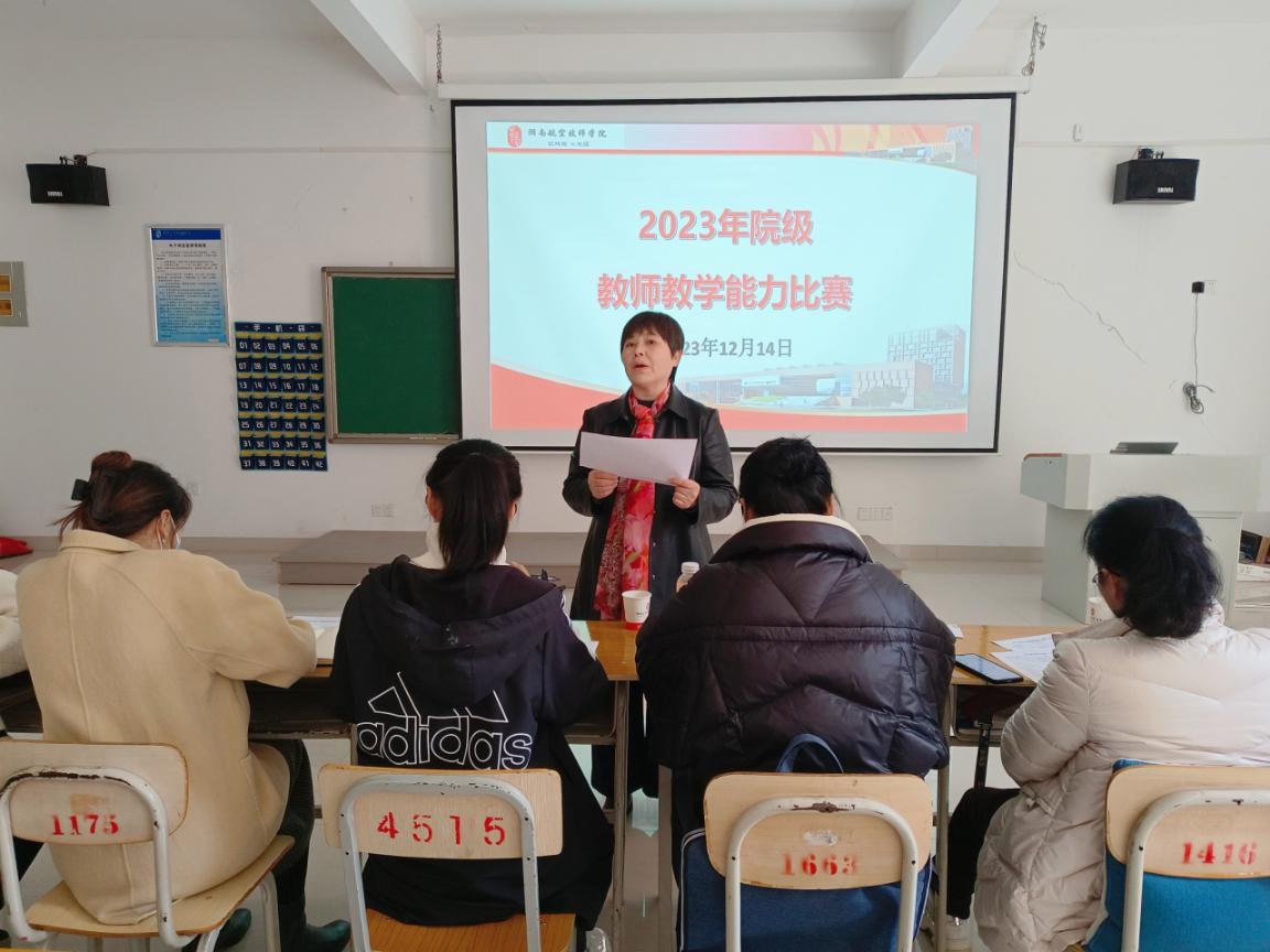 12月15日,我院2023年教师职业能力比赛决赛在强技楼1002教室顺利举行。比赛由教务处处长程满凤主持,党委委员、副院长皮步安,各教学系主任,教学副主任及部分教师代表参加了本次活动。
