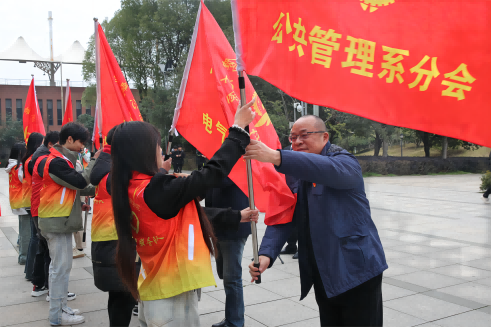 随后,出席的领导为七个系志愿者协会分会授予了旗帜。志愿者代表集体现场做出承诺,表示将积极投身志愿服务,弘扬雷锋精神,为校园和社会做出贡献。