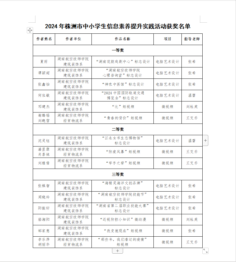 近日,2024年株洲市中小学生信息素养提升实践活动评选结果揭晓,南宫·NG28(China)官方网站成绩喜人,由夏雨同学创作,张希老师指导的“湖南花鼓戏剧中心”标志设计等6个作品荣获一等奖,另有3个作品获得二等奖、6个作品获得三等奖。迄今为止,南宫·NG28(China)官方网站已连续多年在株洲市该类赛项评选中获奖。
