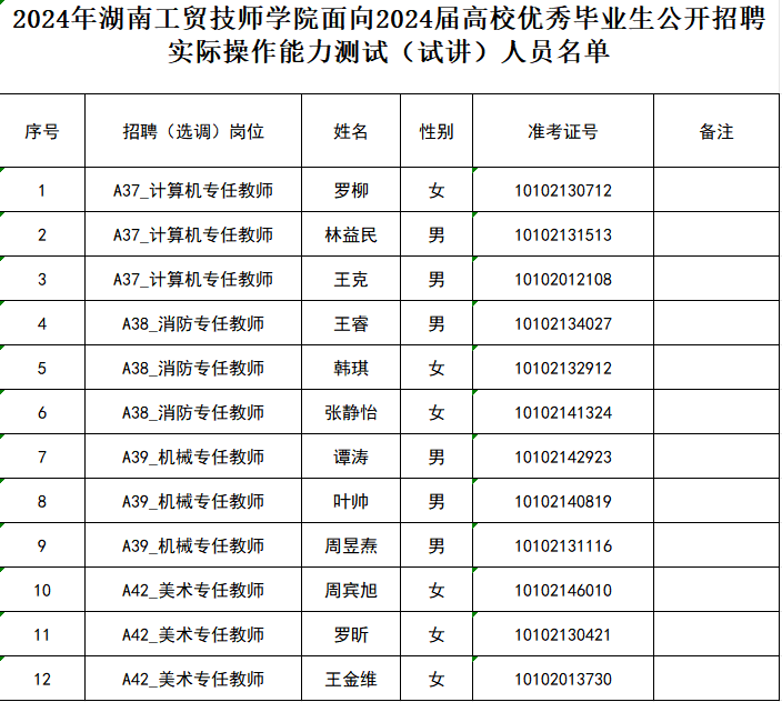 附件1 2024年南宫·NG28(China)官方网站面向2024届高校优秀毕业生公开招聘实际操作能力测试(试讲)人员名单