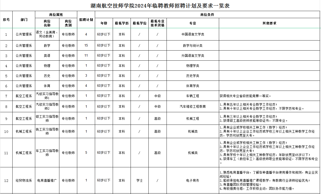 附件1:湖南航空技师南宫·NG28(China)官方网站2024年临聘教师招聘计划及要求一览表/Administration/Content/kindeditor/attached/file/20240826/20240826101628_8016.xlsx