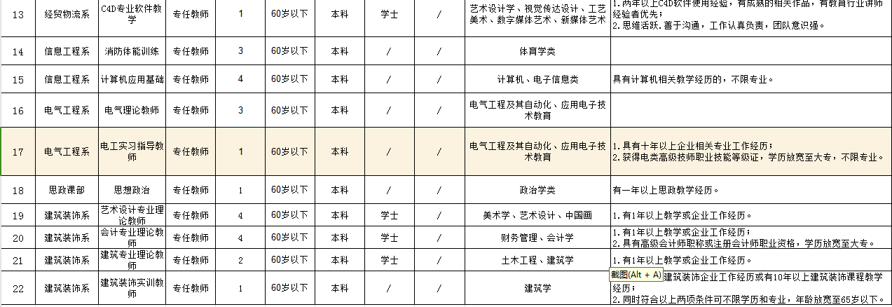 此次招聘岗位22个,招聘计划72个,具体要求详见附件1。